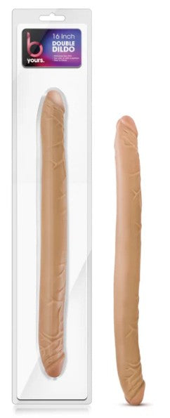 Double your pleasure with our 16 inch Double Dildo. Perfect for lesbian couples that both enjoy penetration, this double dildo allows you to be pleased at the same time. With 16 inches total length to share, that leaves 8 inches for each of you. This Double Dildo is realistic with a pronounced head on each end to increase pleasure. Our double dildo is also flexible enough to be used for double penetration. Made of fragrance and Phthalate Free PVC. Wash with warm soap and water, or your favorite toy cleaner, before and after every use. Pat dry with a soft towel before storing. Enjoy peace of mind as Blush products are always 3rd party lab tested for safety. Our product comply with U.S.'s Prop65 and the EU's REACH safety standards. Be mindful of what you put in your body. Water Based, Hybrid Lube Safe