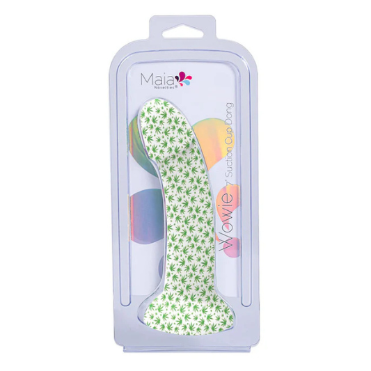 WOWIE is our new 7-inch Silicone Suction Cup Dong and is a new addition to our line of 420 Series products. Wowie features a strong suction cup base that is compatible with most harnesses. This Weed print design is made from 100% Medical Grade Silicone and has a diameter of 1-1/2” with an insertable length of 6”...